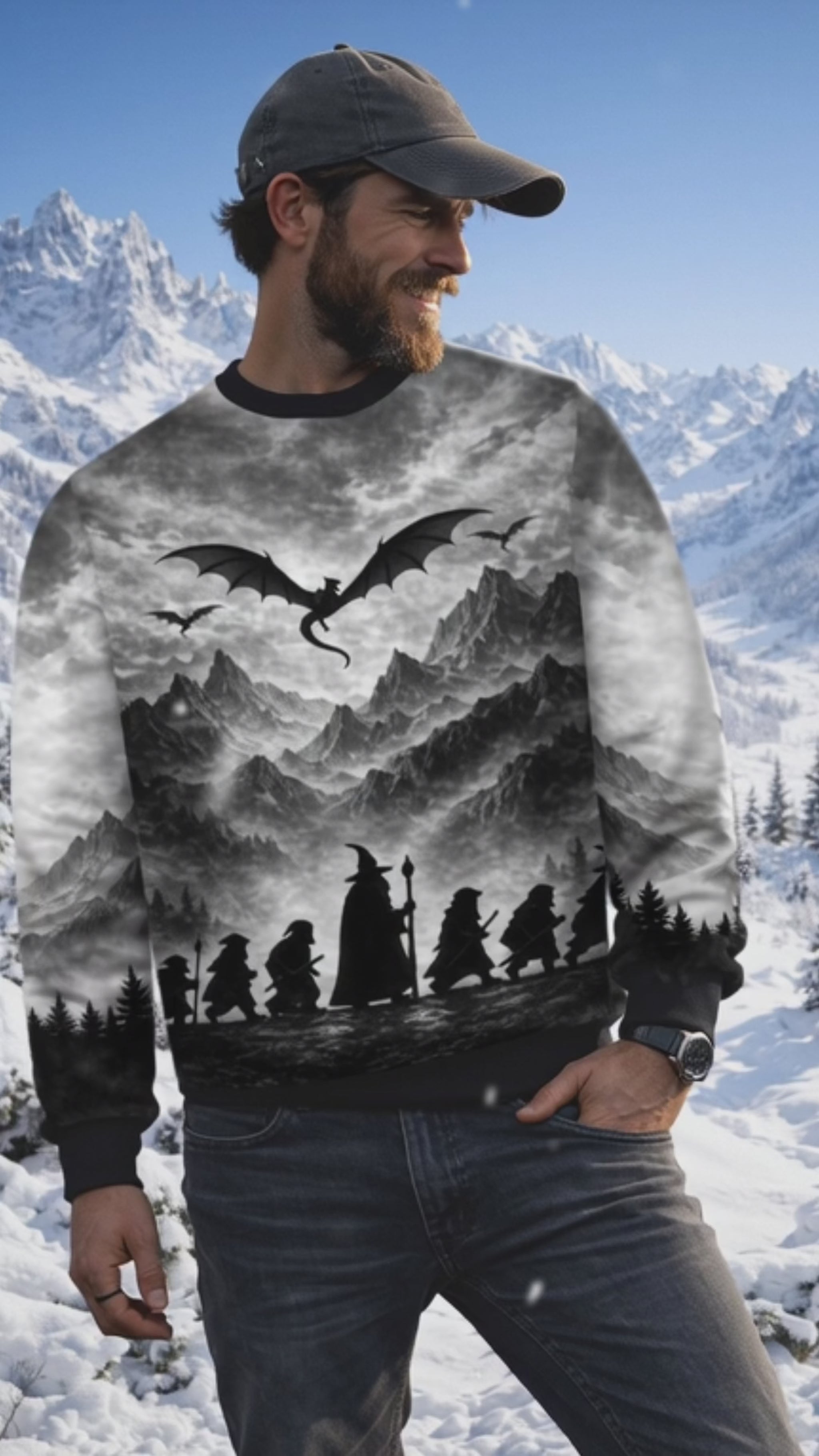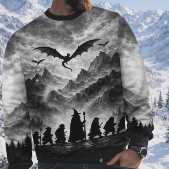 Pullover Magical Fantasy World with Wizard and Dragon